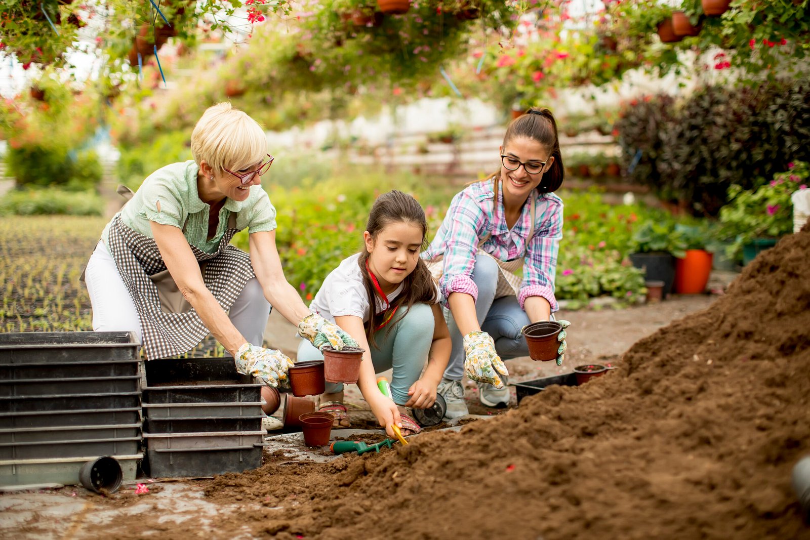 Maintaining outdoor spaces through gardening services that include planting, lawn care and gardening.